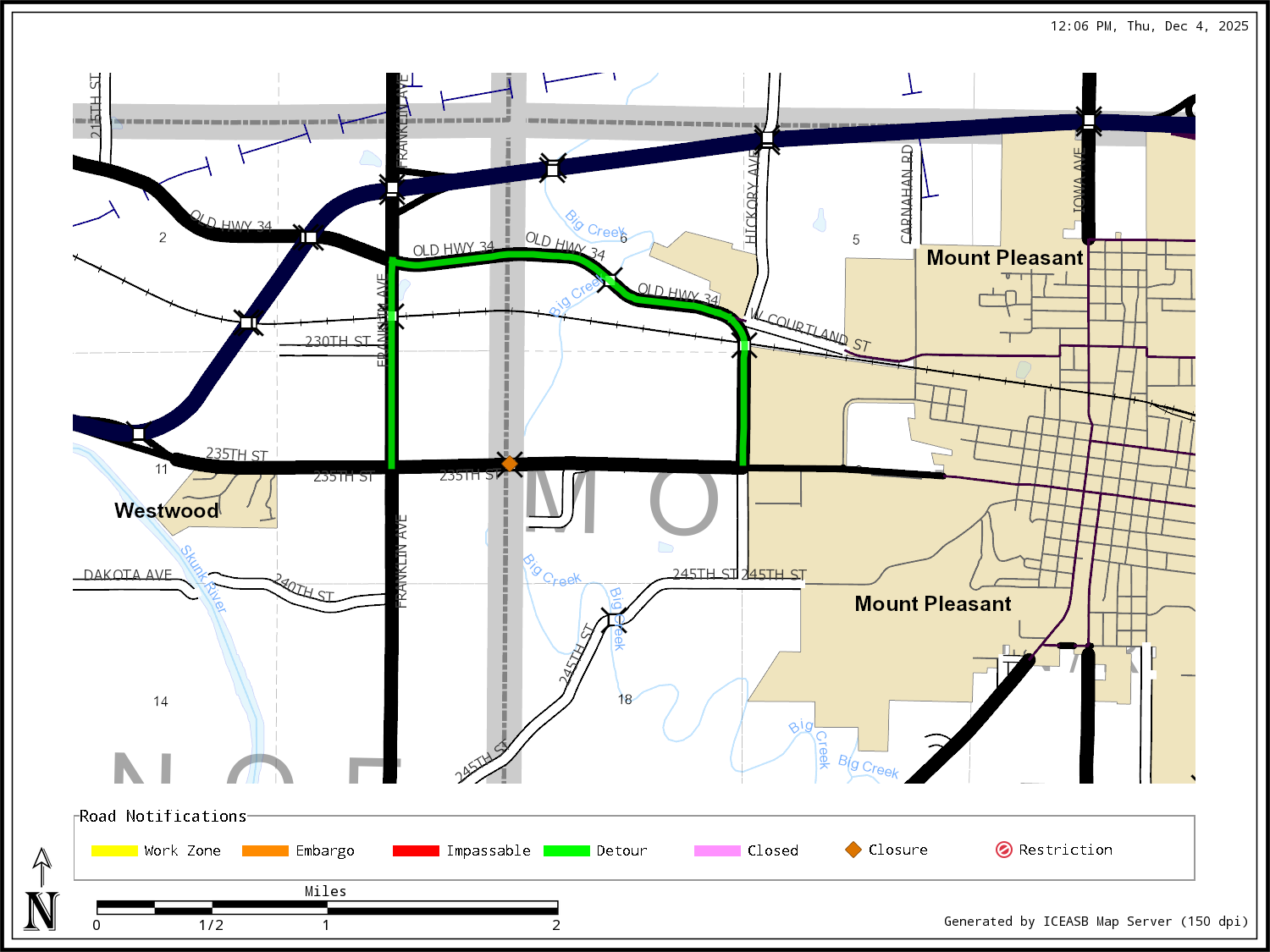 Henry County drivers should expect a long-term road closure starting next week. Beginning Monday, December 8th, the bridge over Big Creek on 235th Street — also known as Business 34 just west of Mount Pleasant — will close for a full bridge replacement project.