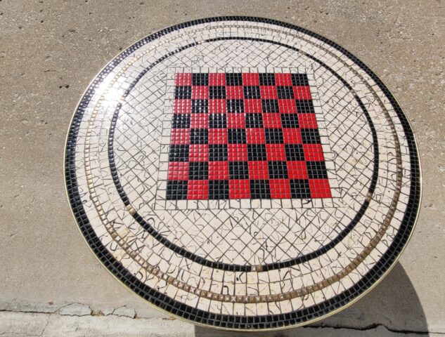 For Sale... Make a donation of $10. to save this art piece of hand set tiled chess table top. Is heavy. Needs stronger legs. Maybe glue onto a strong card table? Or just hang it on the wall for STRIKING ART In Mount Pleasant!