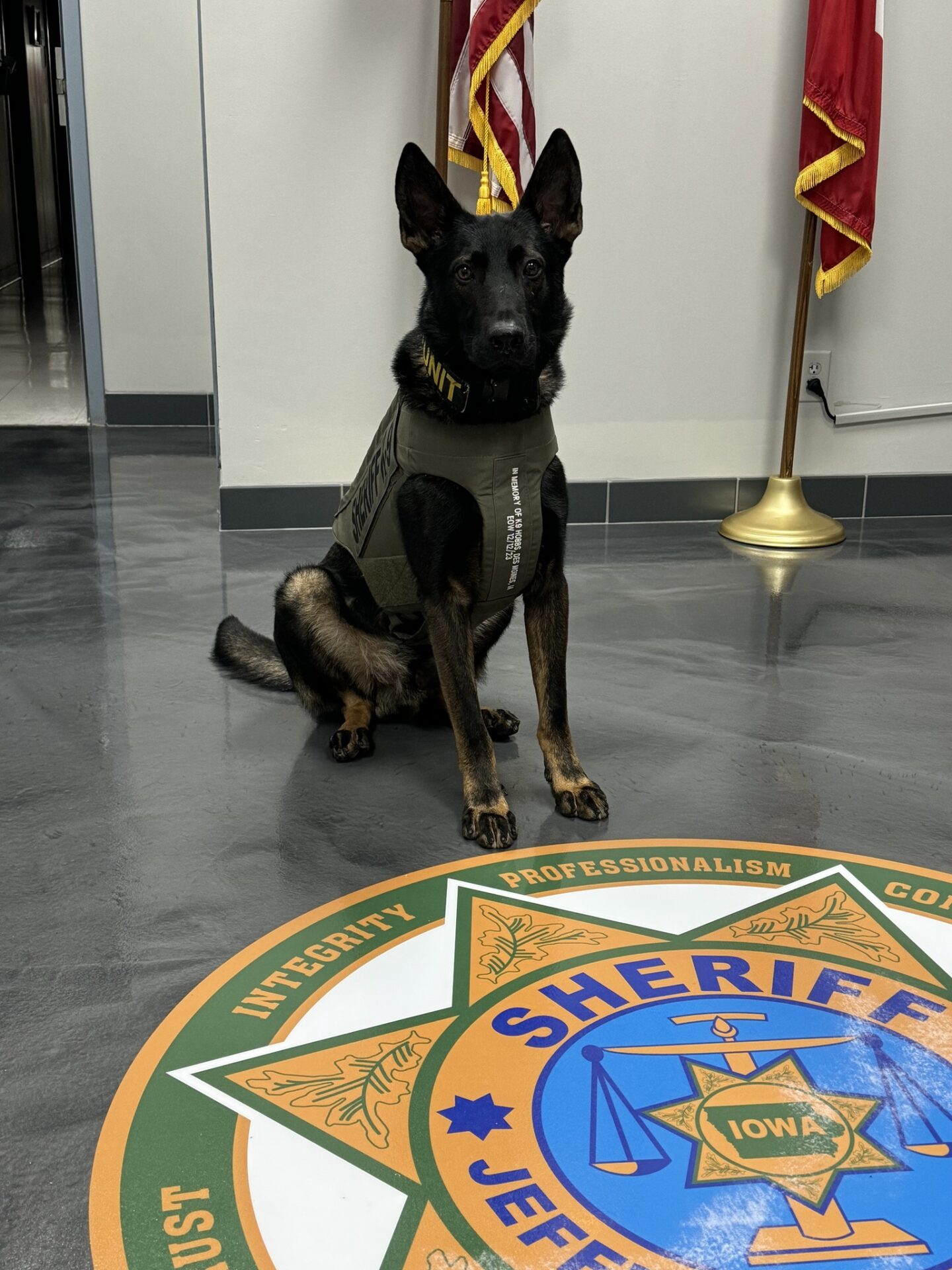Jefferson County Sheriff’s Office, IA, K9 Kalo has received a bullet and stab protective vest thanks to a charitable donation from non-profit organization Vested Interest in K9s, Inc. K9 Kalo’s vest was sponsored by Vested Interest in K9s, Inc.