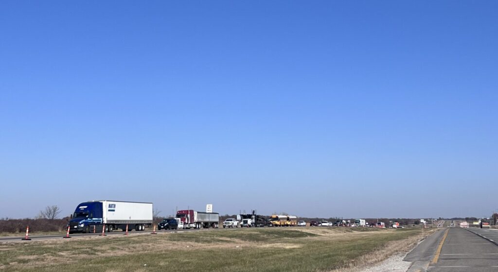 Traffic backups extended north to Old Highway 218, worsened by construction already underway in the area. Iowa State Patrol and Henry County Sheriff’s deputies directed alternating traffic flow, allowing northbound vehicles to move for several minutes before stopping them to let southbound traffic proceed.